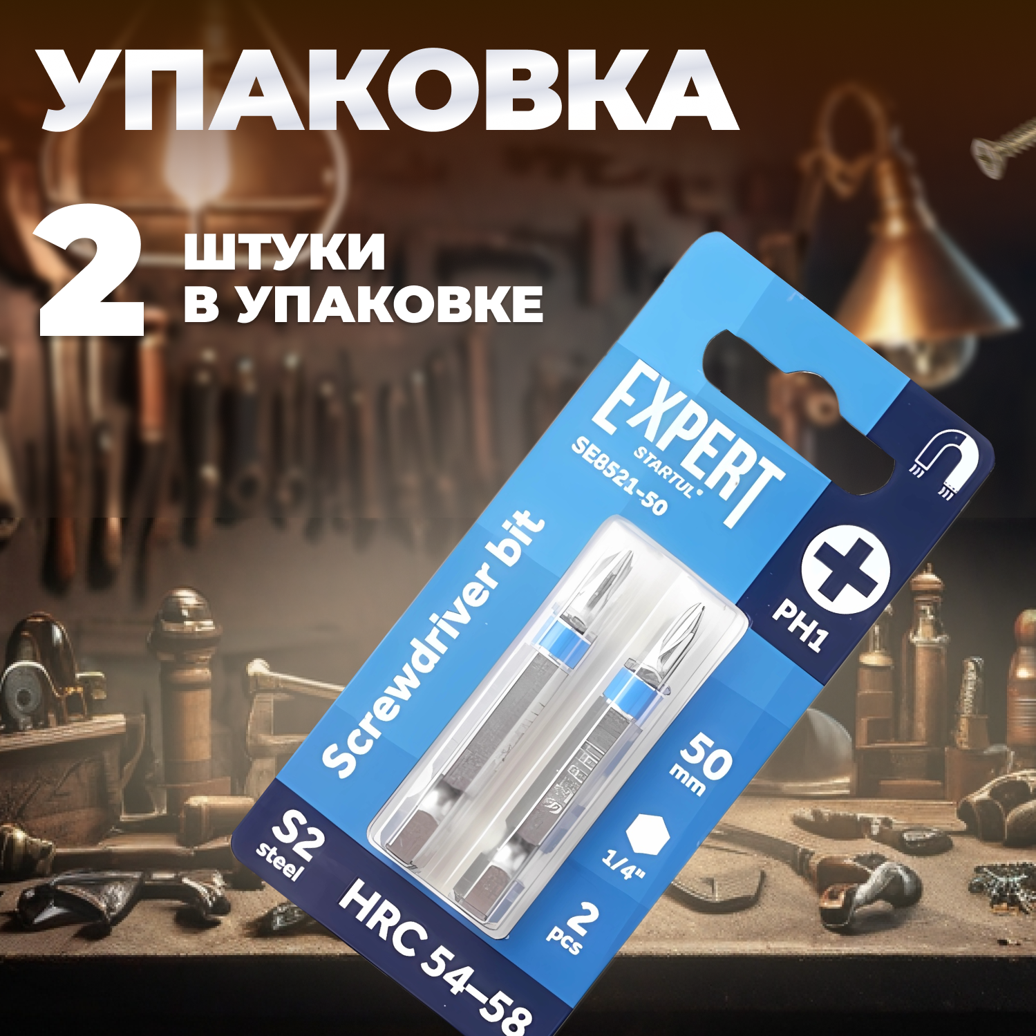 Биты для шуруповерта магнитные PH1 50 мм STARTUL Expert 2 штуки (SE8521-50)