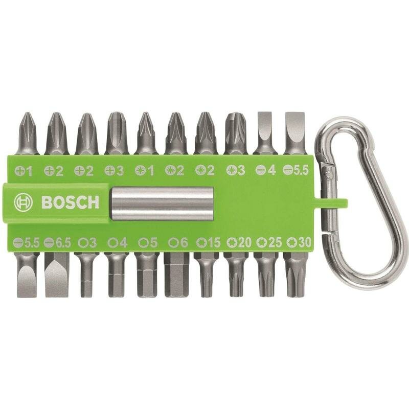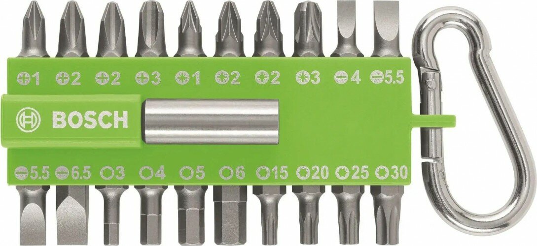 Набор расходников Bosch: 20 бит + держатель с карабином, 2607002823 зеленый
