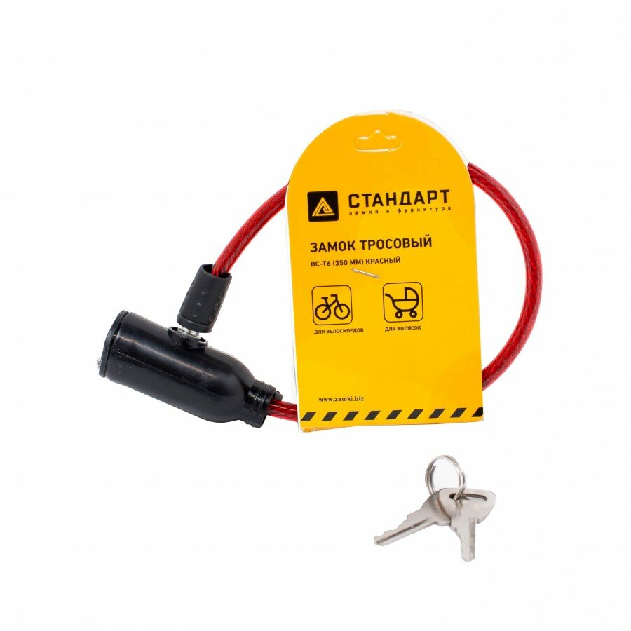 Стандарт ВС-Т6 (350 мм) RED красный Замок велосипедный тросовый zm_13917