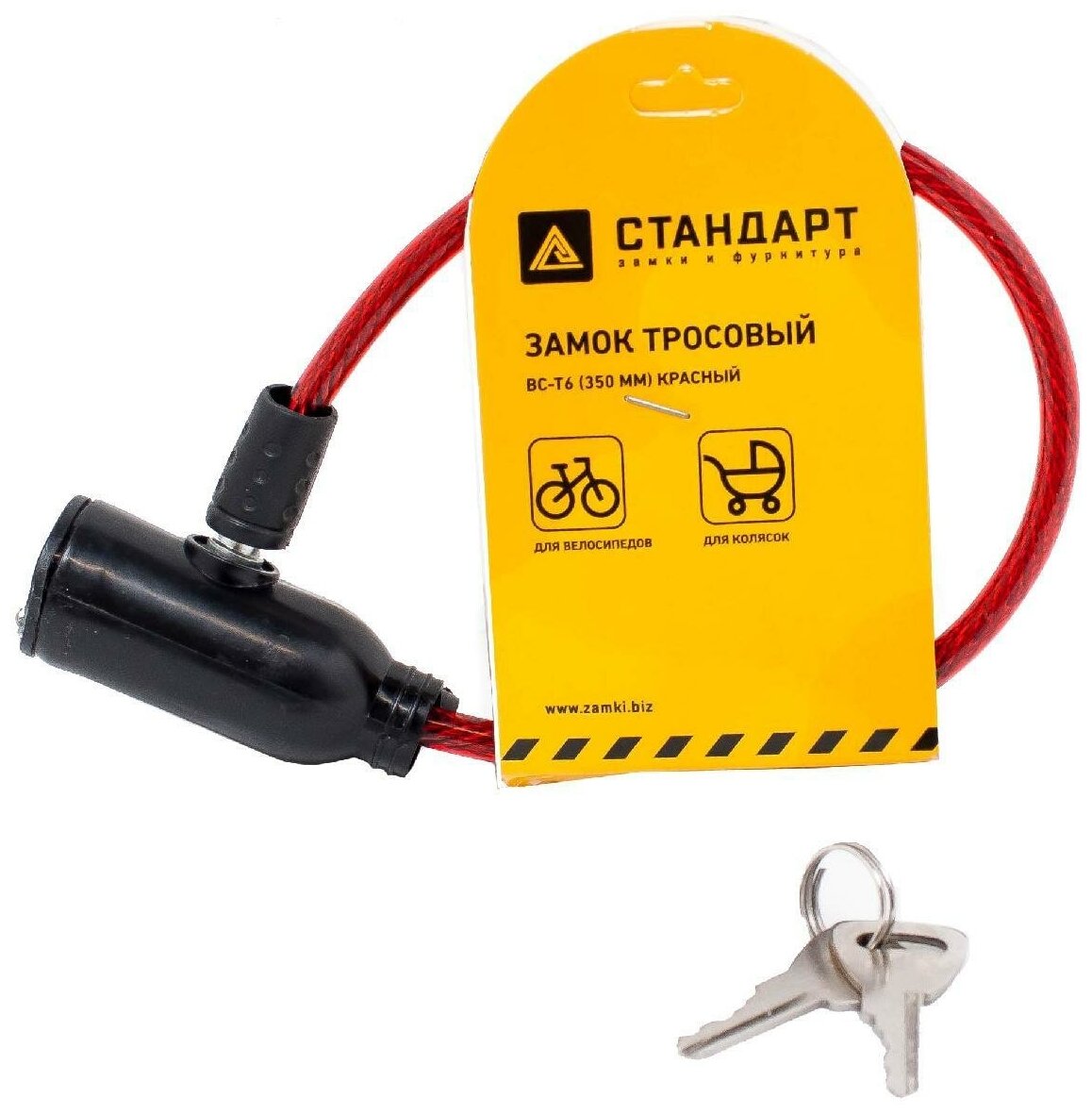 Купить Замок велосипедный тросовый стандарт ВС-Т6 (350 мм) красный