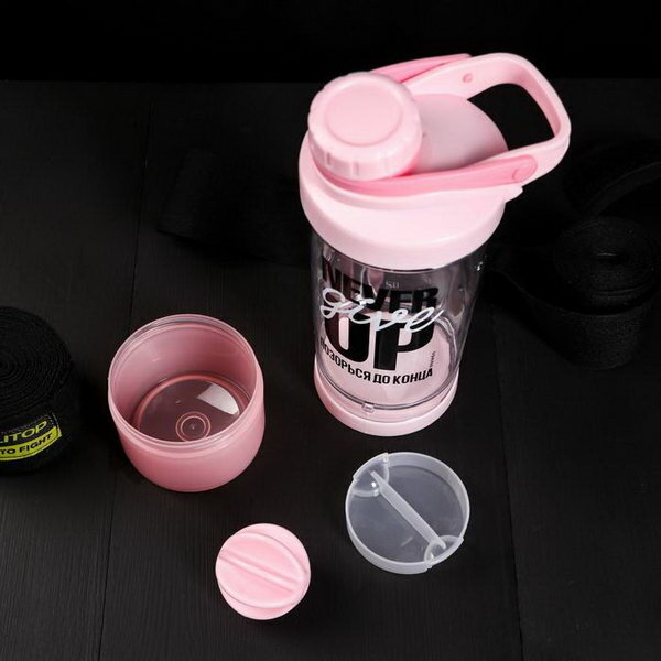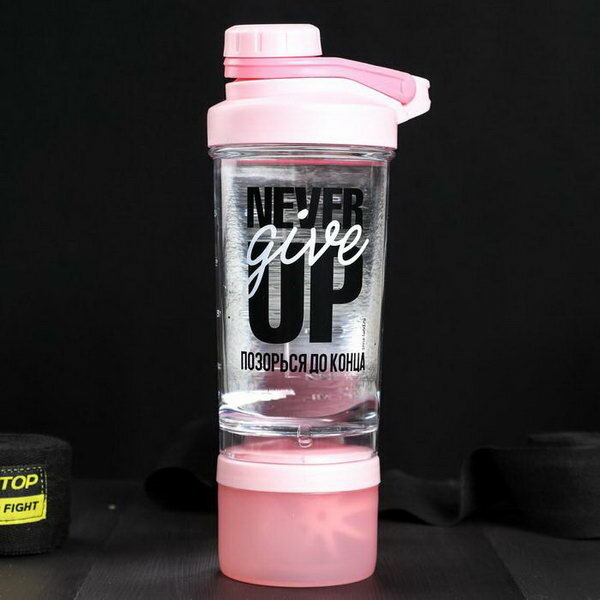 Шейкер спортивный, с чашей "Never give up", 600 мл, розовый интересное: