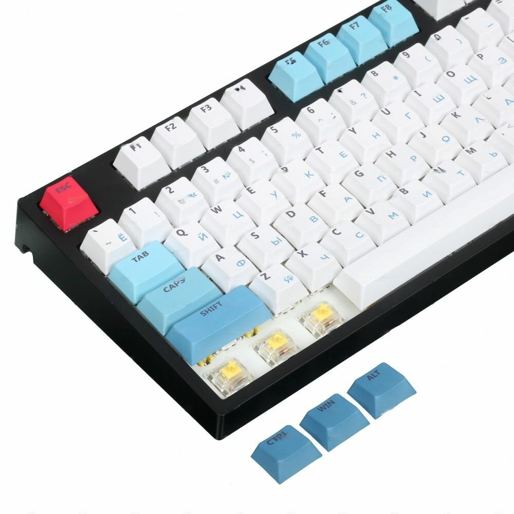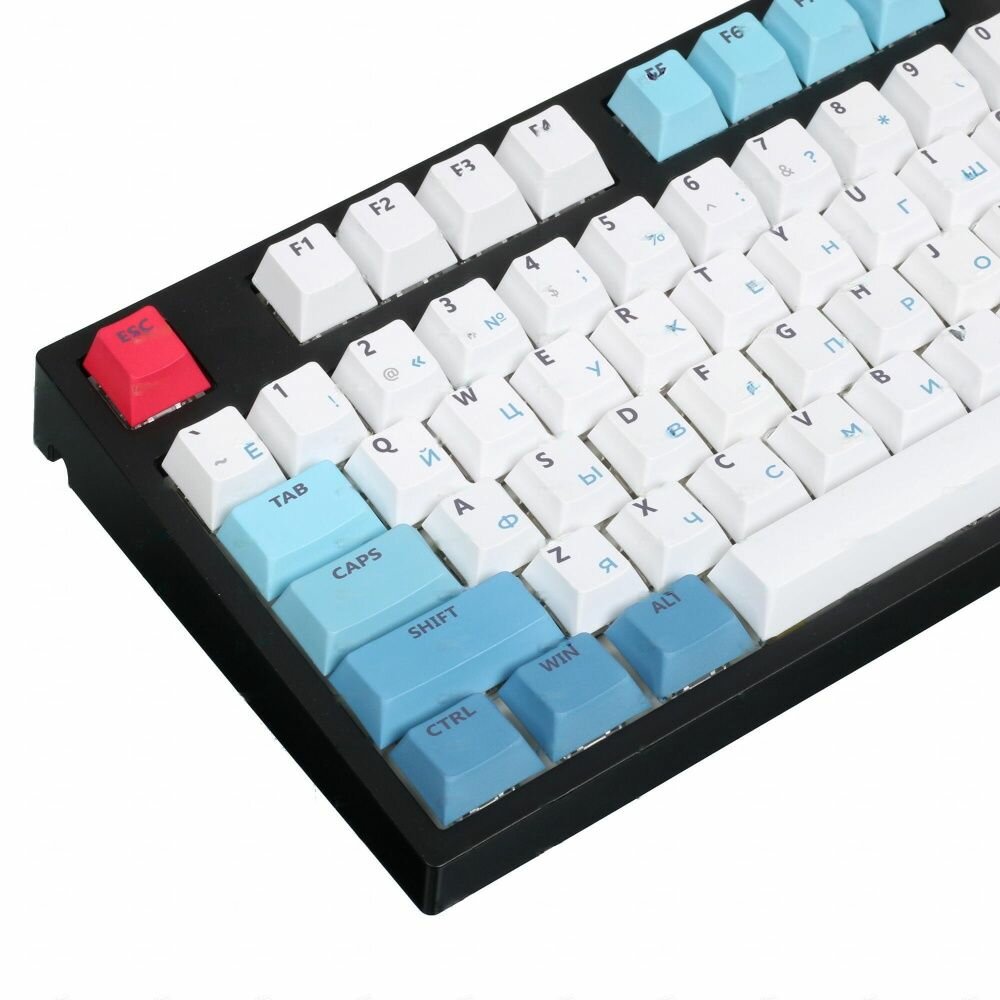 | Минусы: | Абсолютно отвратительные переключатели, дребезг контактов на некоторых начался спустя три месяца. Благо, в запасе были Gateron Milk Yellow, на которые менял "дребезжащие" свитчи. Новые свитчи (которые вроде как почти как исходные _должны быть_) работают без нареканий вообще.