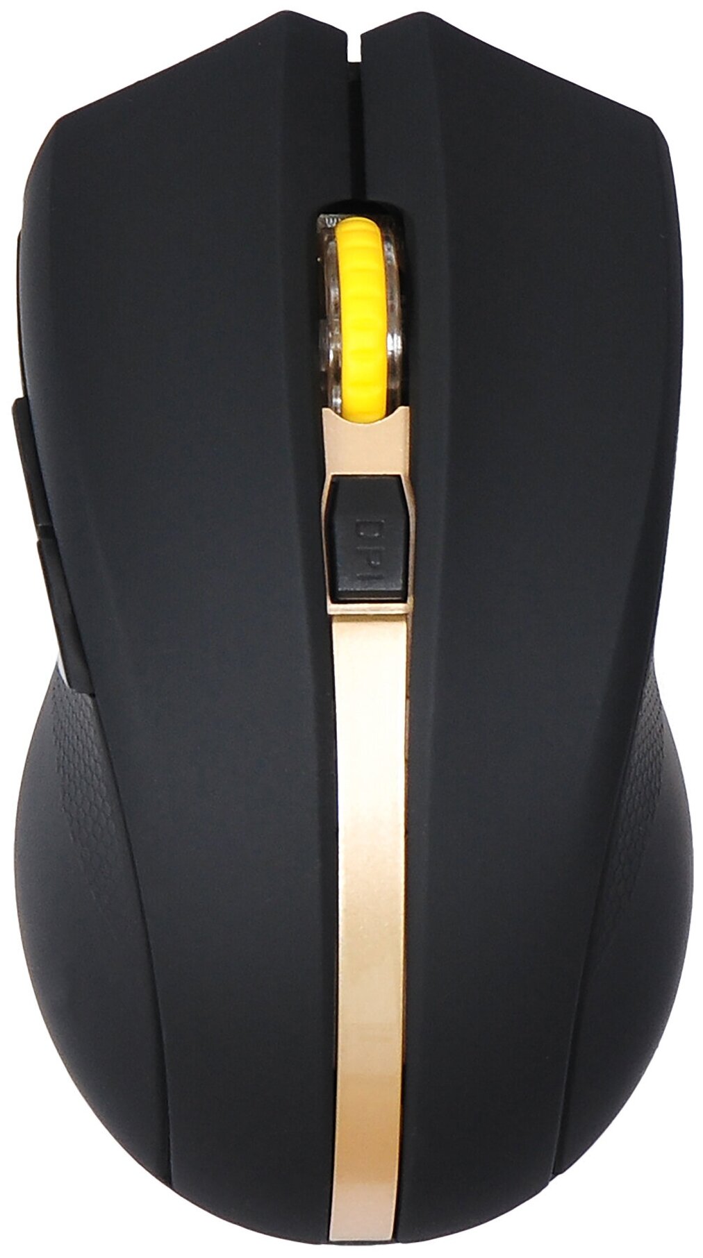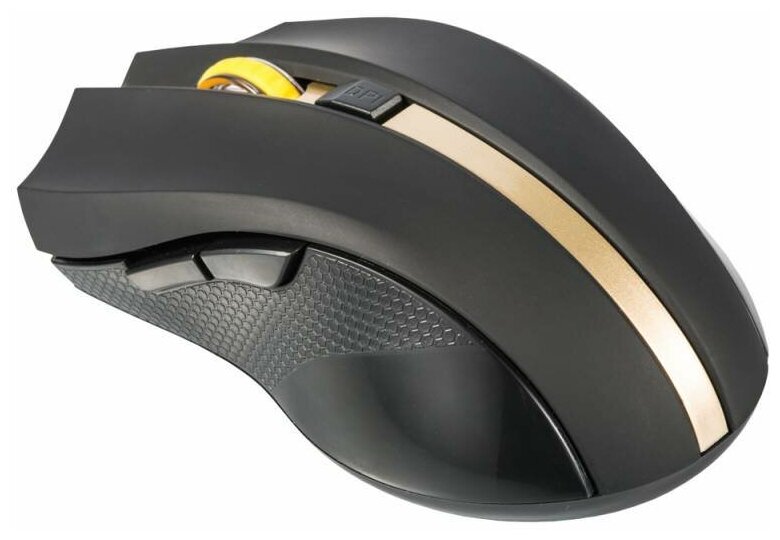Мышь OKLICK 495MW черный/золотистый, оптическая (1600dpi), беспроводная, USB (6 кнопок)