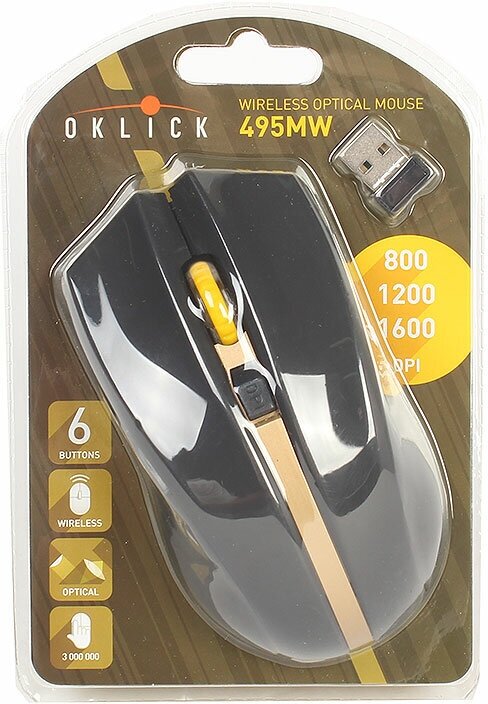 Ниже Вы можете прочитать отзывы на Мышь OKLICK 495MW черный/золотистый оптическая (1600dpi) беспроводная USB, ознакомится с подробными характеристиками, посмотреть интересные обзоры и фотографии на Мышь OKLICK 495MW черный/золотистый оптическая (1600dpi) беспроводная USB.