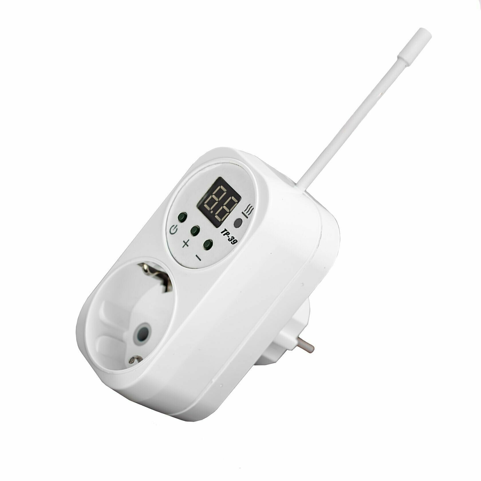 Терморегулятор в розетку ЭргоЛайт ТР-39 с дисплеем (универсальный, для любых электрических обогревателей, до 3500 Вт)