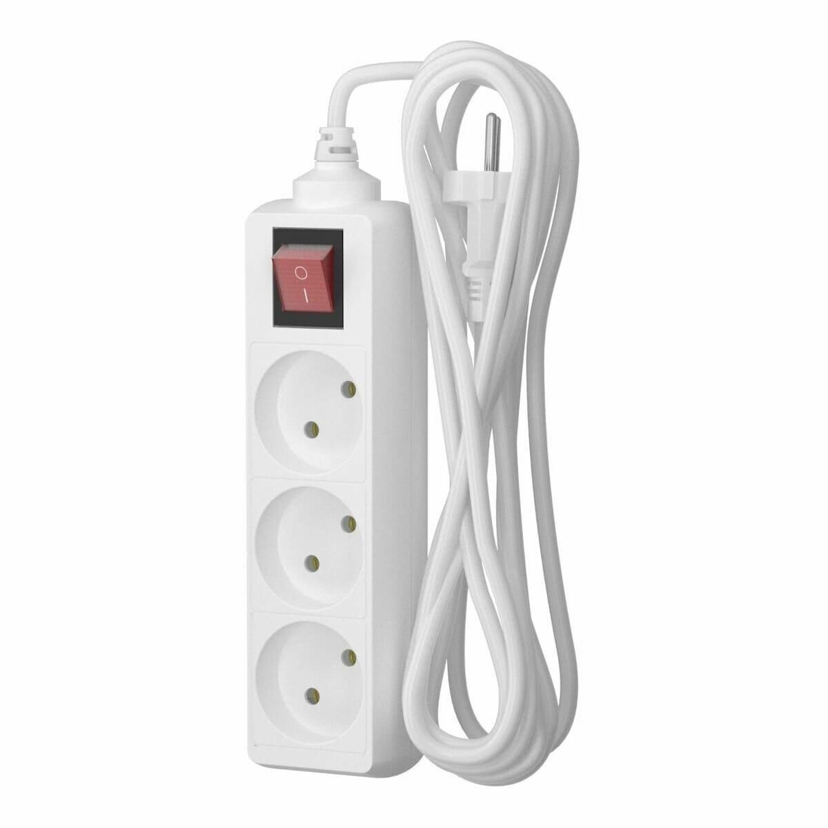 Удлинитель сетевой для розетки, удлинитель для гирлянды фотон 10А 3 метра 3 розетки с выключателем белый, ГОСТ