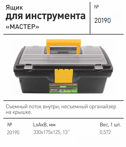 Ящик для инструментов Мастер 13 дюймов 330 х 175 х 125 мм Дельта 20190