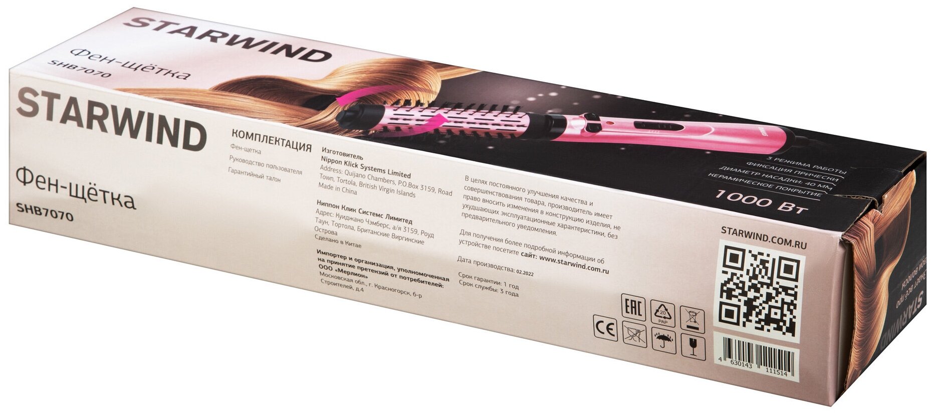 Фен-щетка Starwind SHB 7070 1000Вт фиолетовый SHB 7070 . интересное: