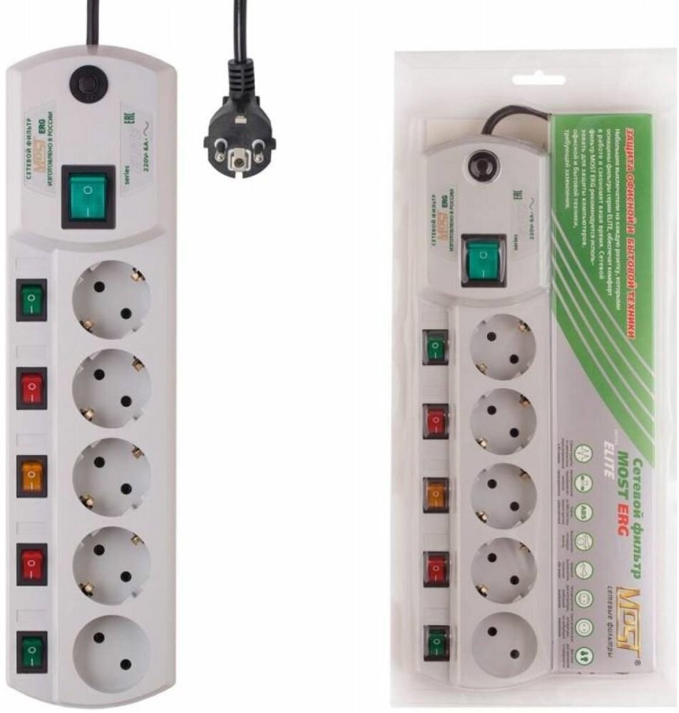 Сетевой фильтр Most ERG, 5м, белый [most erg 5 m бел]