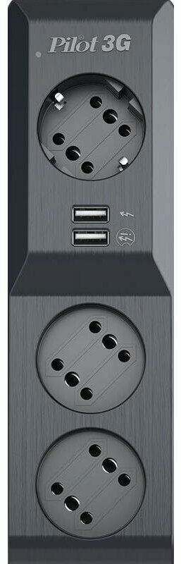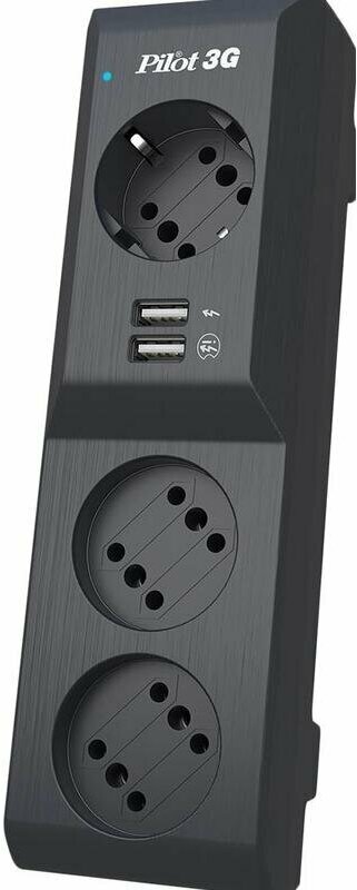ZIS Surge protector Pilot 3G 3xGP euro outlets, 10А/2.2кВа, 2xUSB, 5m, black