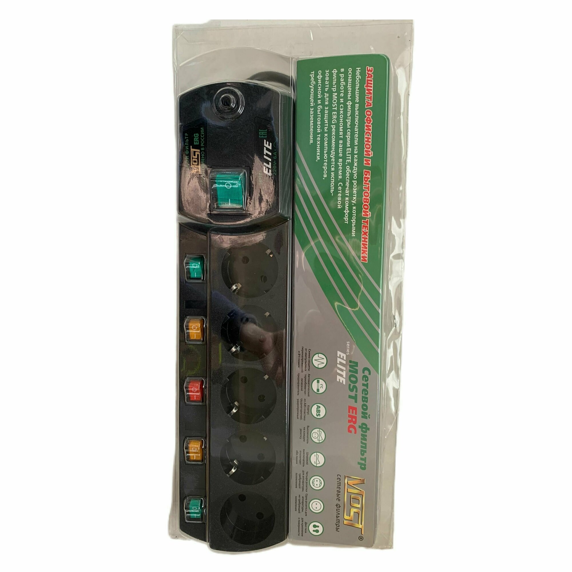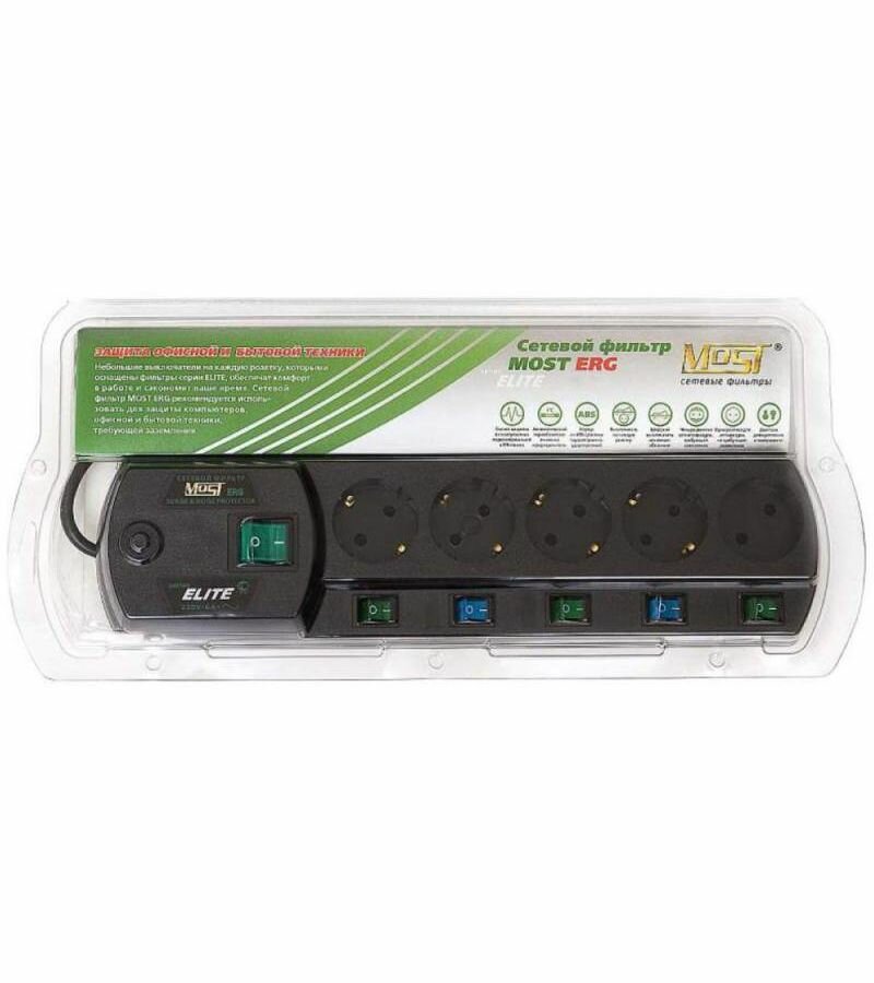 Сетевой фильтр MOST ELITE ERG-Ч 2М 5 розеток, черный BL1