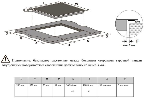 | Ширина для встраивания | 56 см |