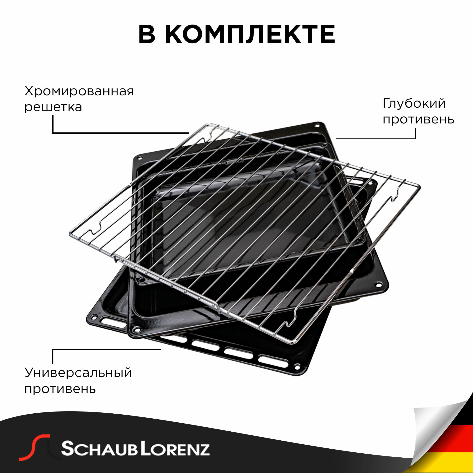 Электрический духовой шкаф встраиваемый Schaub Lorenz SLB EY6943, 78л,черное стекло, гриль, конвекция, пицца, размораживание