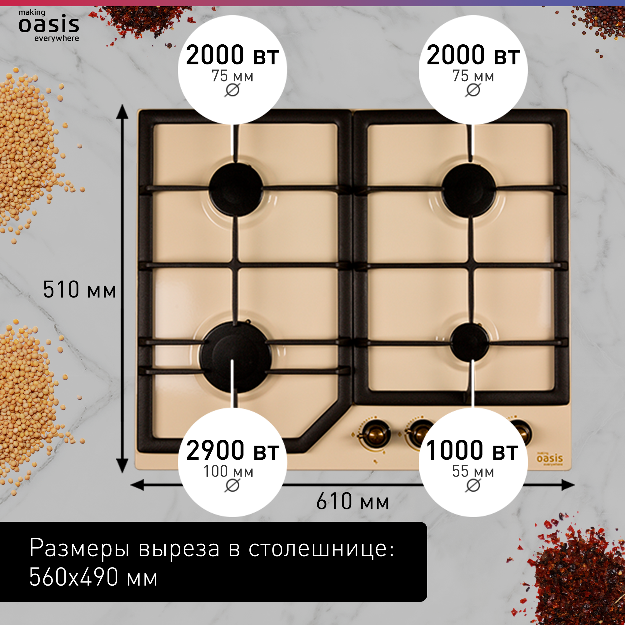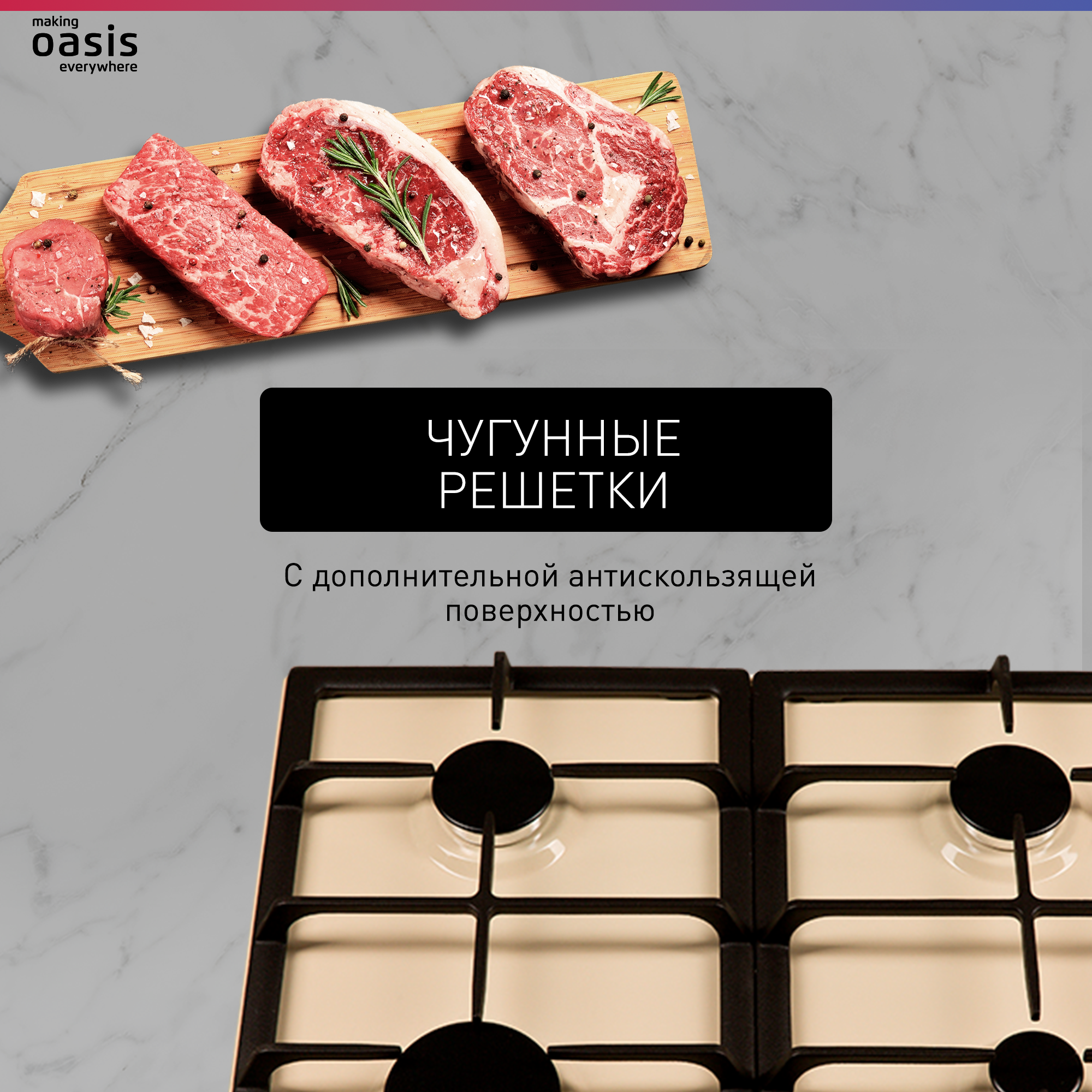 Варочная панель газовая Oasis P-MR (F) /БЕЖ., чугун. решетки/ интересное: