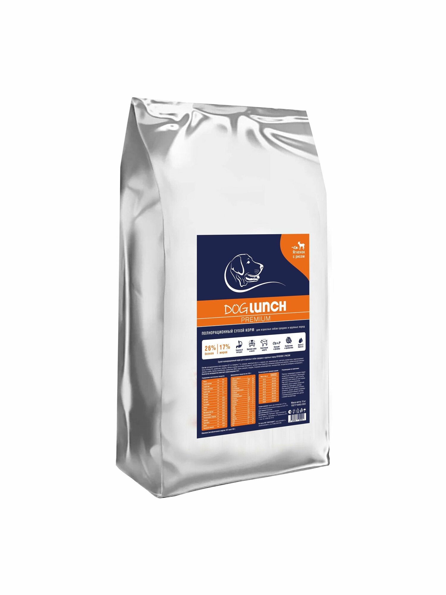 Dog Lunch Премиум сухой корм для собак средних и крупных пород с ягненком и рисом - 15 кг