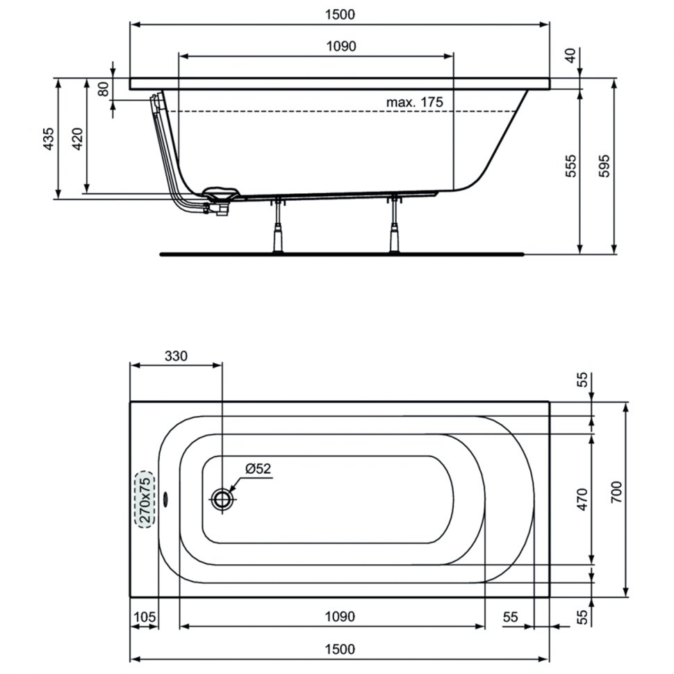 Купить Акриловая ванна Ideal Standard SIMPLICITY 1500x700 W004201