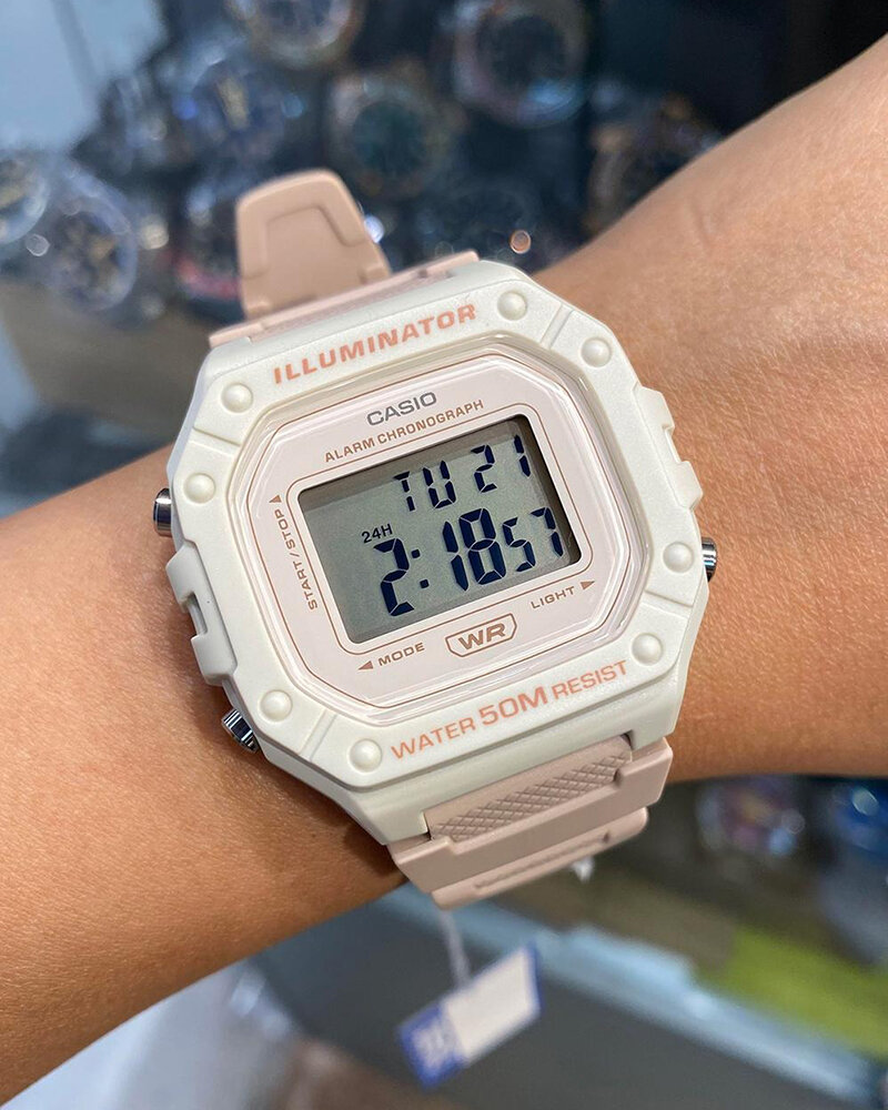 W-218HC-8A Casio наручные часы кварцевые WR50 (5 атм) мужские, женские бежевый секундомер будильник отображение дня недели, отображение числа подсветка дисплея акриловое стекло