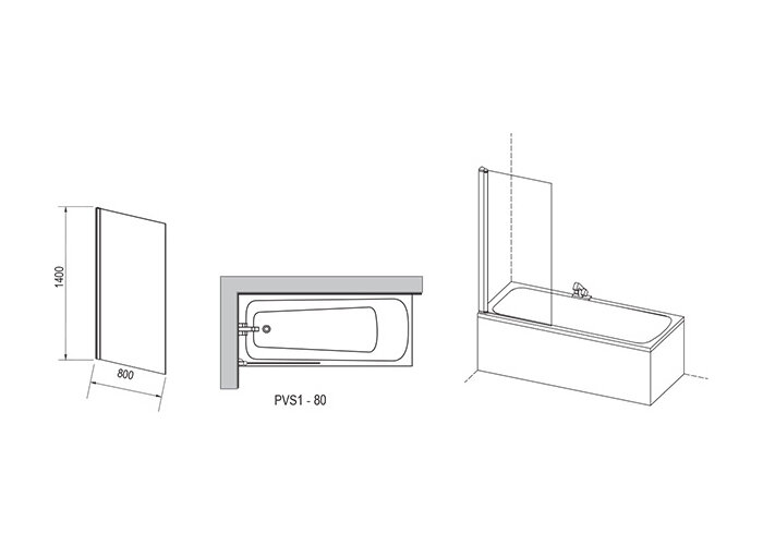 Шторка для ванны Ravak PVS1 80х140см, арт. 79840U00Z1, прозрачная, стационарная, профиль сатин, сатин + транспарент