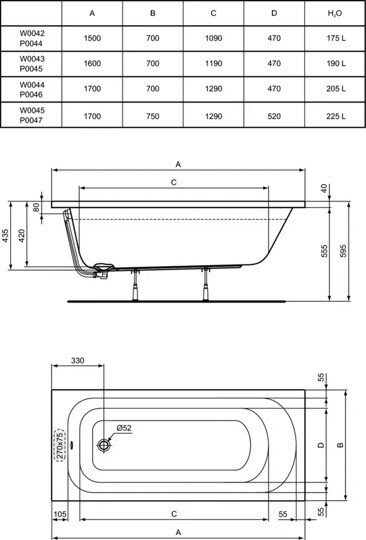 Купить Акриловая ванна Ideal Standard SIMPLICITY 1700x700 W004401