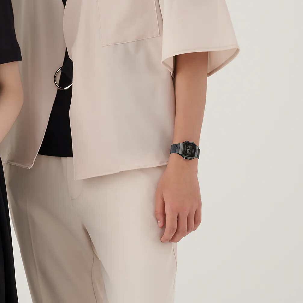 A168WEGG-1A Casio наручные часы кварцевые WR30 (3 атм) мужские, женские черный секундомер будильник отображение числа, отображение дня недели, отображение месяца подсветка дисплея акриловое стекло