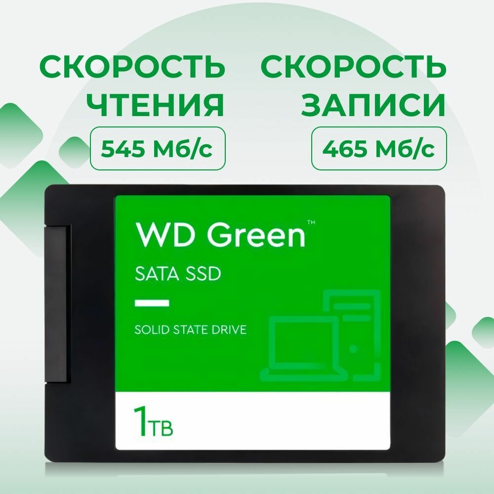 Внутренний твердотельный накопитель WD Green 3D NAND WDS100T2G0A 1ТБ 2,5" SATA-III (TLC) SSD интересное: