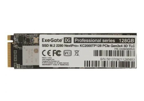 Накопитель SSD M.2 2280 128GB ExeGate NextPro+ KC2000TP128 (PCIe Gen3x4, NVMe, 22x80mm, 3D TLC)EX282320RUS