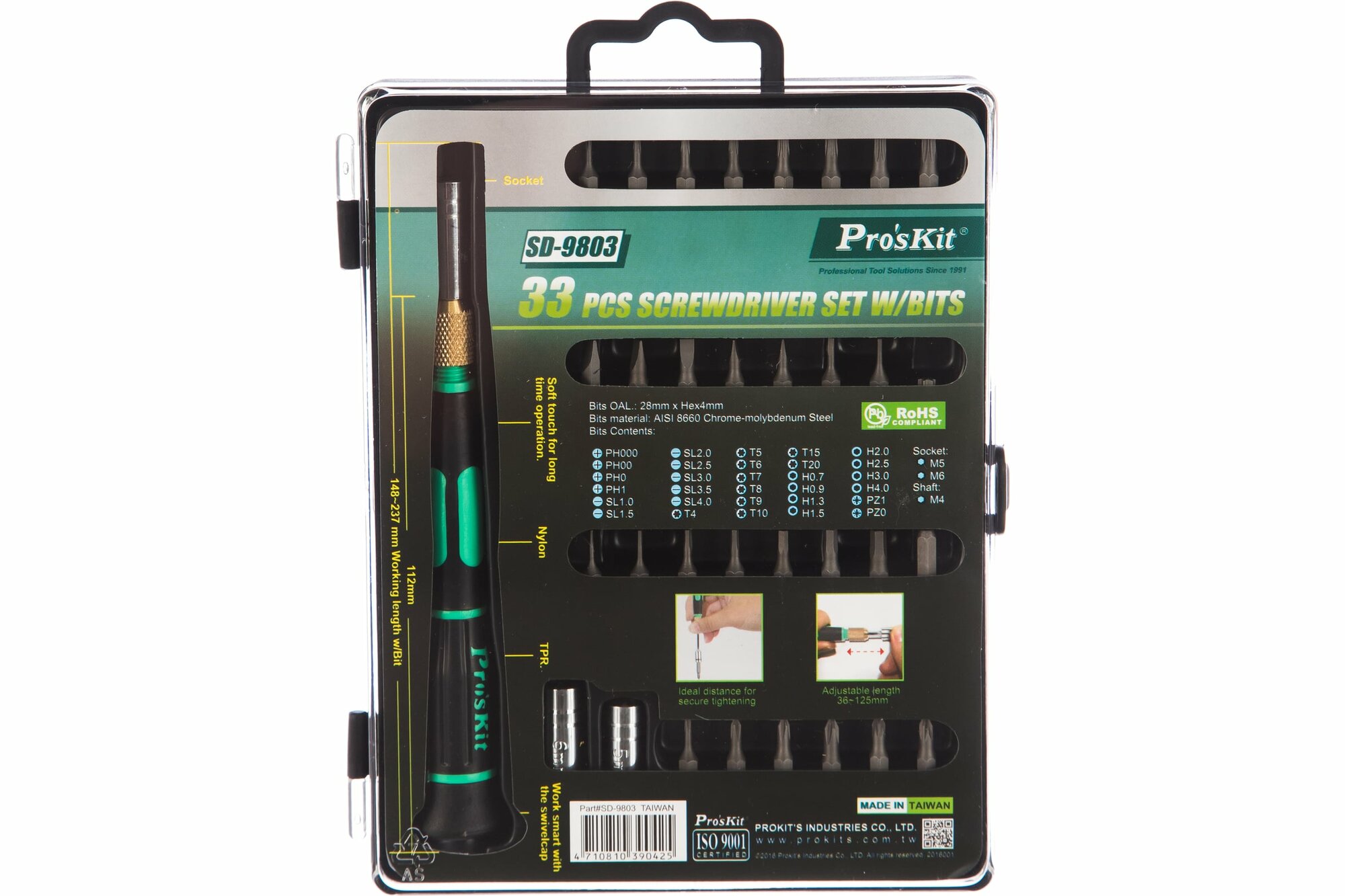 SD-9803 Набор отверток ProsKit SD-9803 прецизионных с насадками, 33 предмета