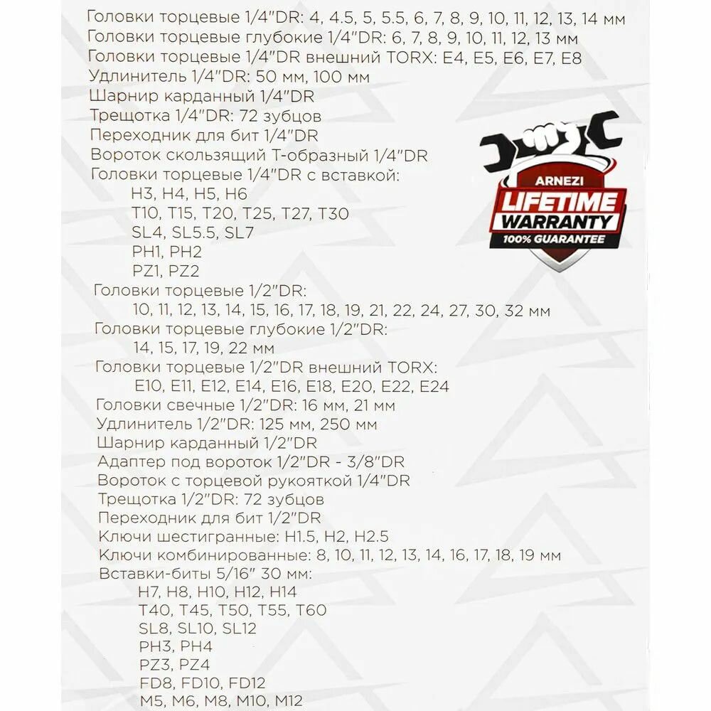 Набор Инструментов 130 Пр. 1/4Dr, 1/2Dr ARNEZI арт. R0900130