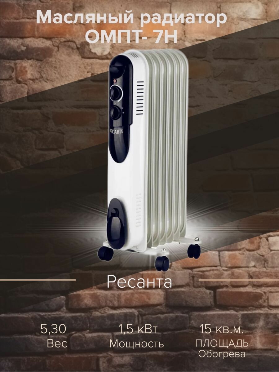 Масляный обогреватель Ресанта ОМПТ-7Н, 7 секций, 1500 Вт