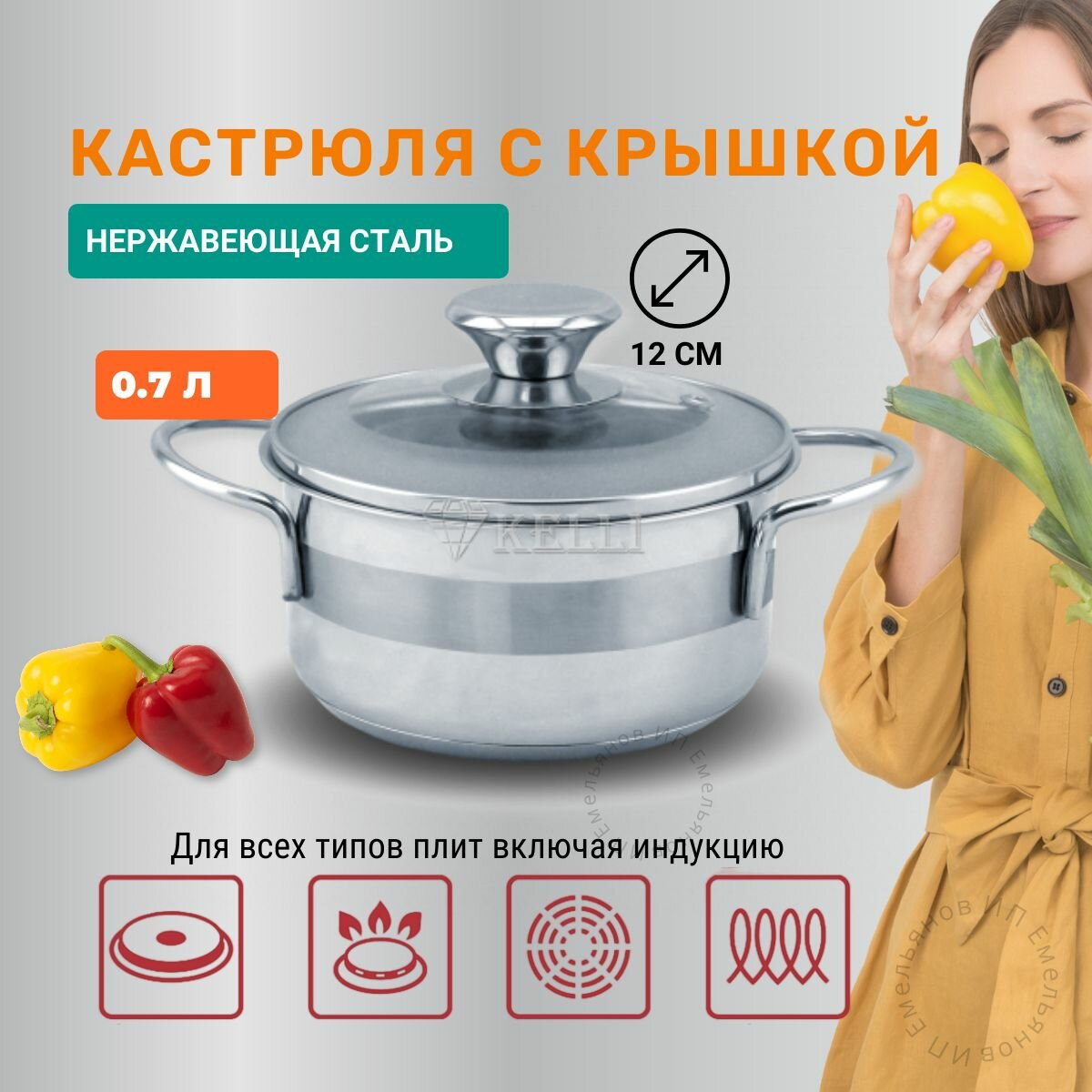 Кастрюля из нержавеющей стали Kelli KL-4241, 0.7 л