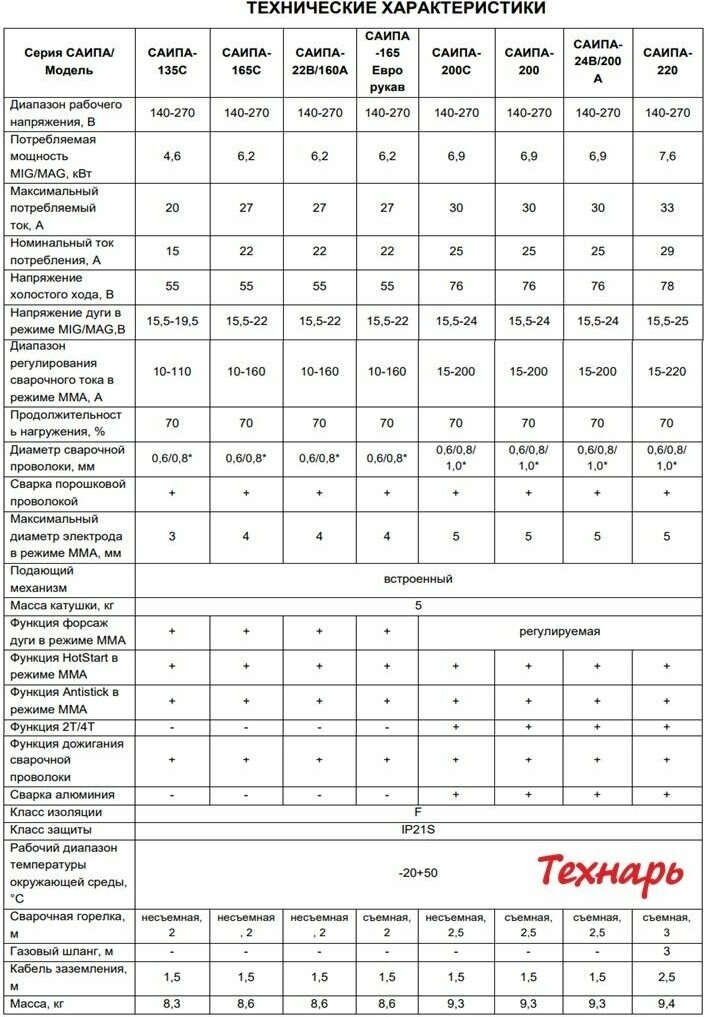 | Полуавтоматическая сварка (MIG/MAG) | есть |