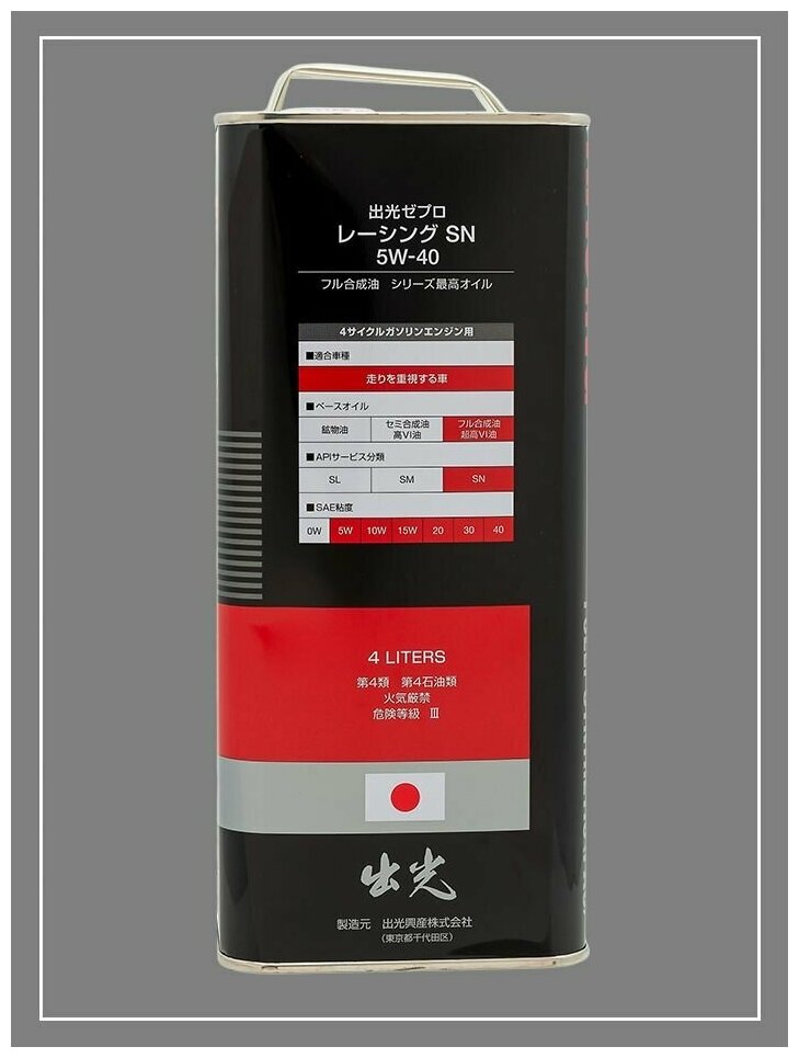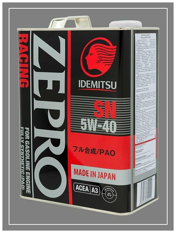 | Дополнительная информация | Моторное масло IDEMITSU Zepro Racing 5W-40 SN |