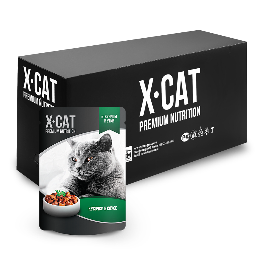 Консервы для кошек X-CAT курица и утка в соусе, 85 г х 24 шт