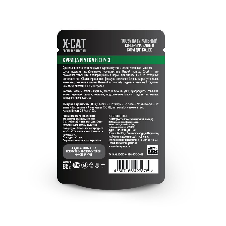 X-CAT Влажный корм для кошек курица и утка в соусе 427878 0,085 кг 37303 (18 шт)