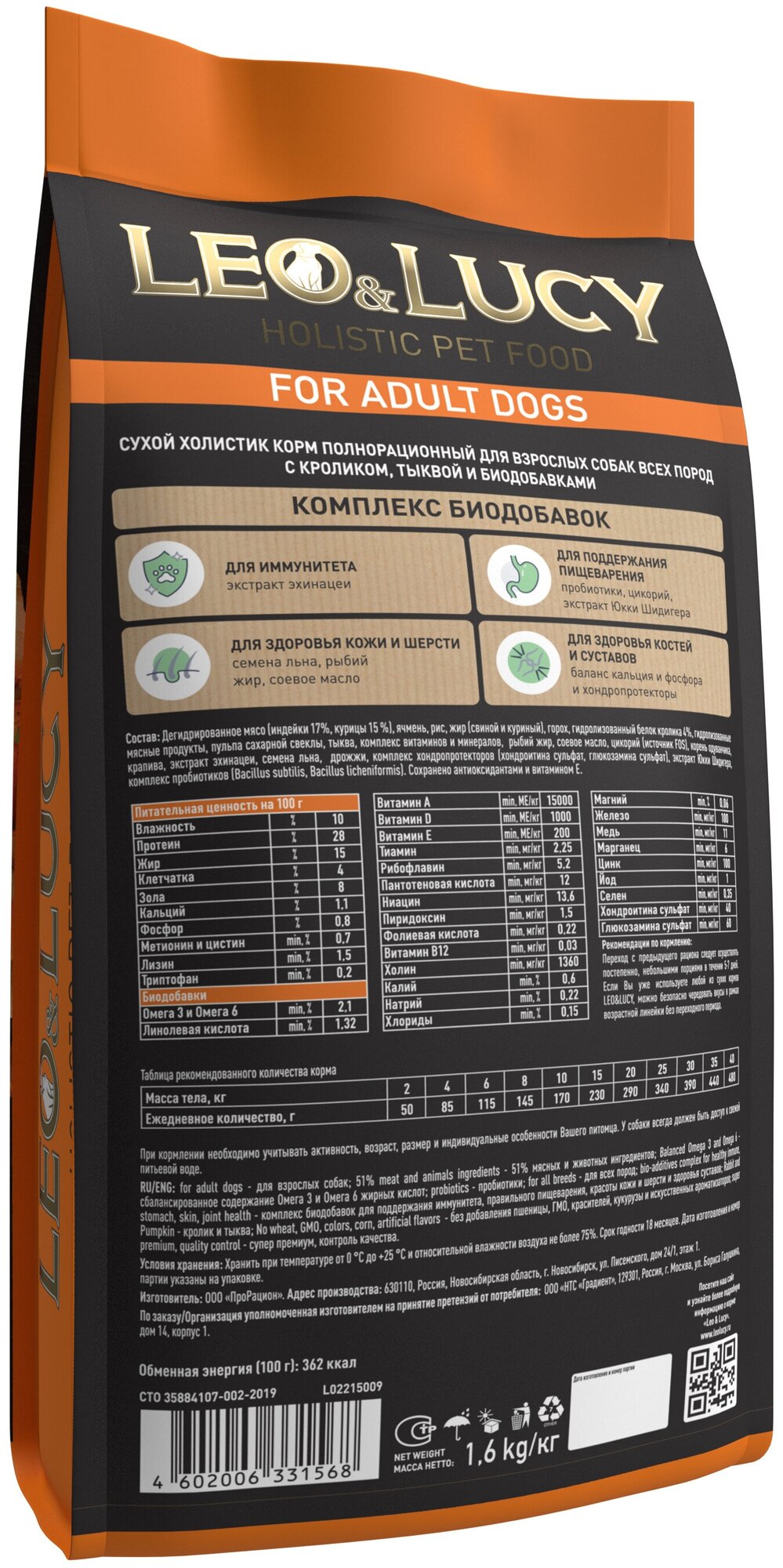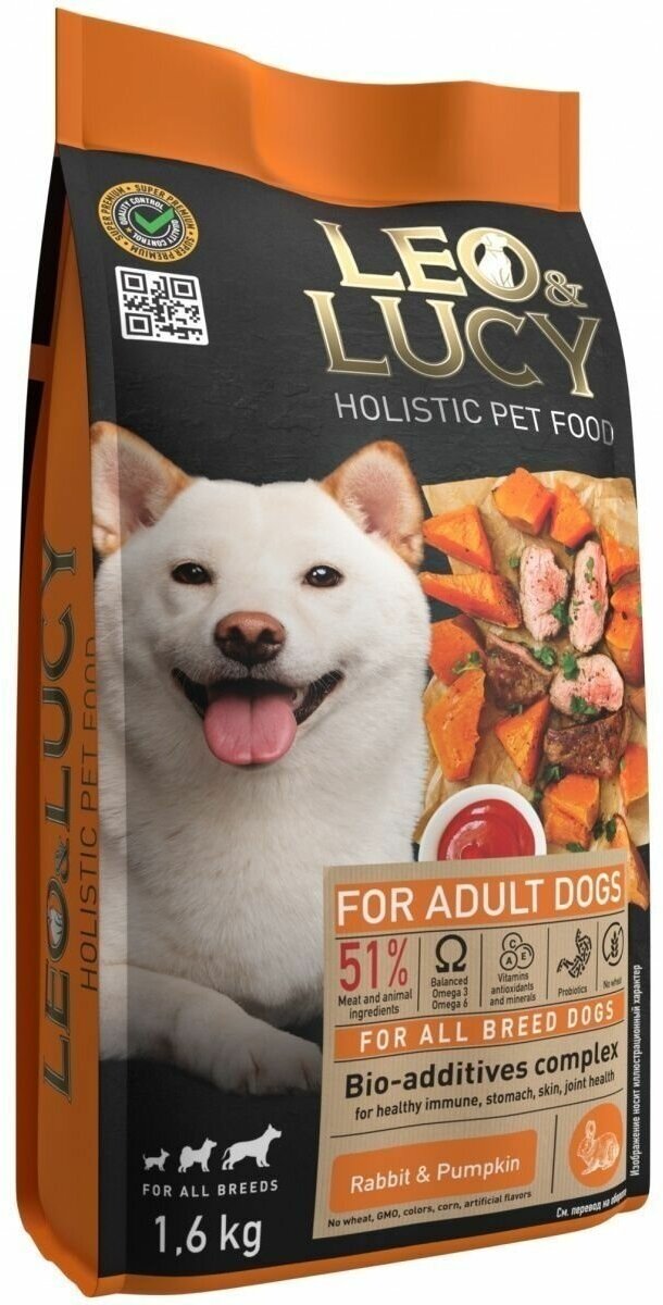Leo & Lucy - Сухой корм для взрослых собак всех пород, с Кроликом, Тыквой и Биодобавками, 1.6 кг 30471 1.6 кг интересное: