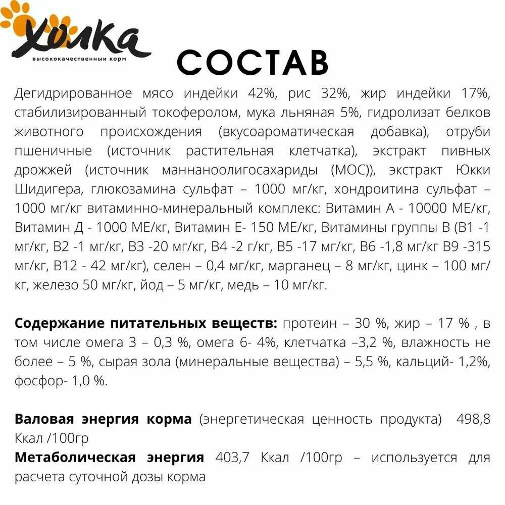 Корм холка гипоаллергенный премиум класса для взрослых собак средних и крупных пород с индейкой и рисом, 3 кг