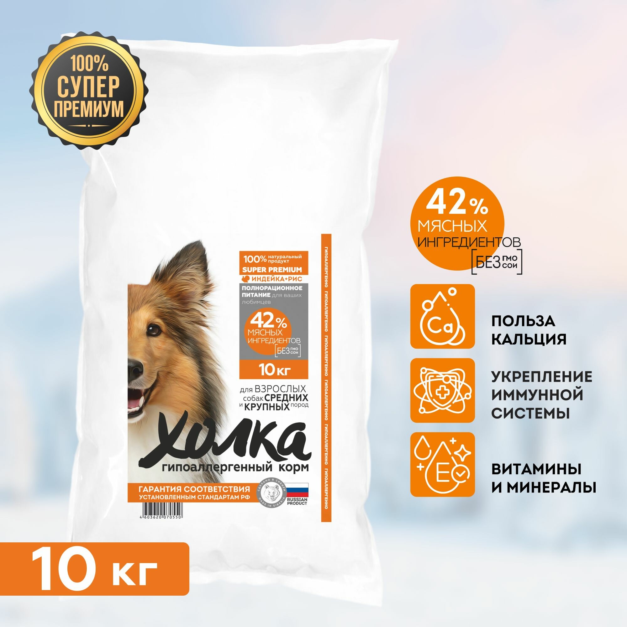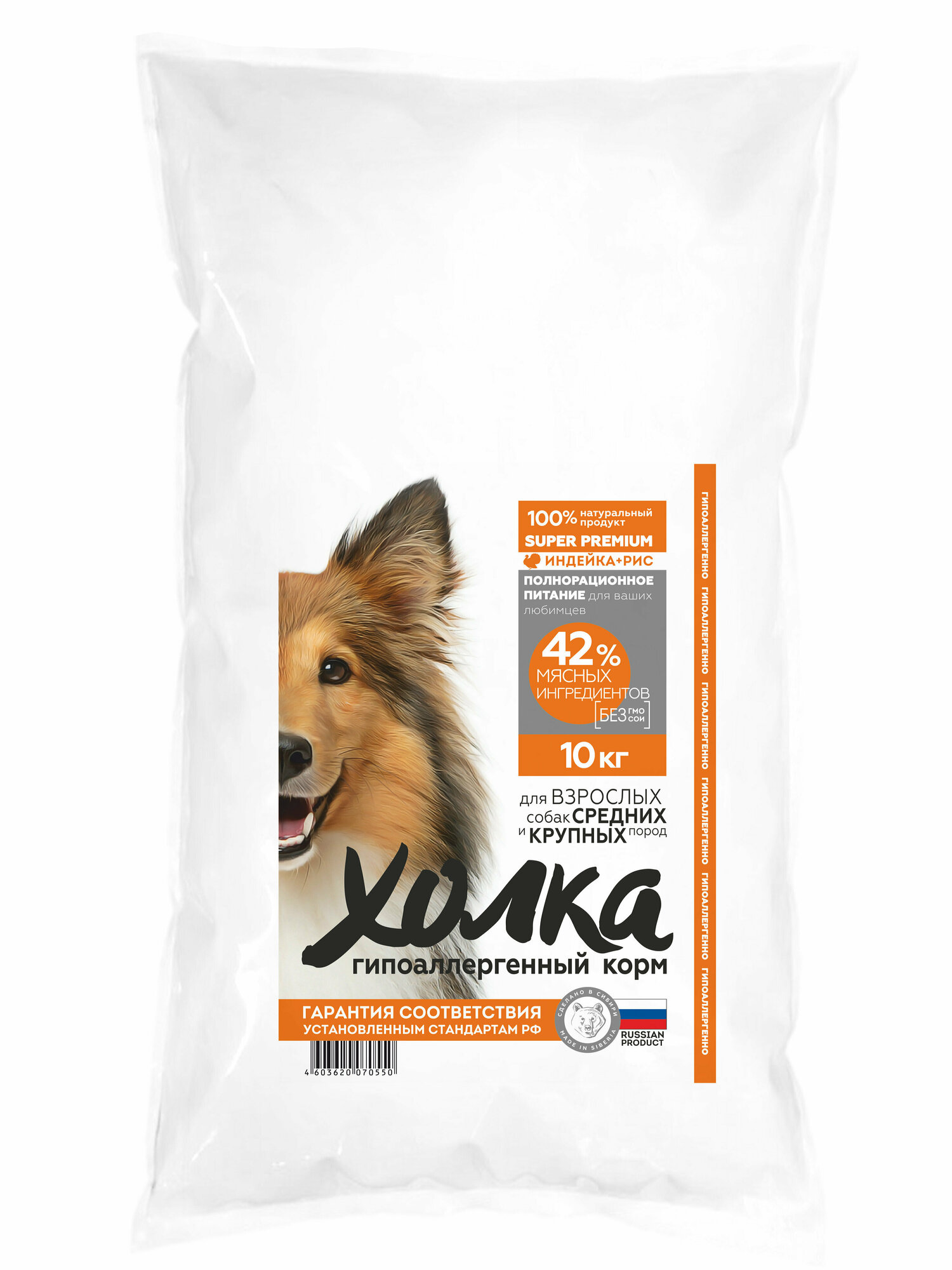 Корм холка гипоаллергенный премиум класса для взрослых собак средних и крупных пород с индейкой и рисом, 10 кг
