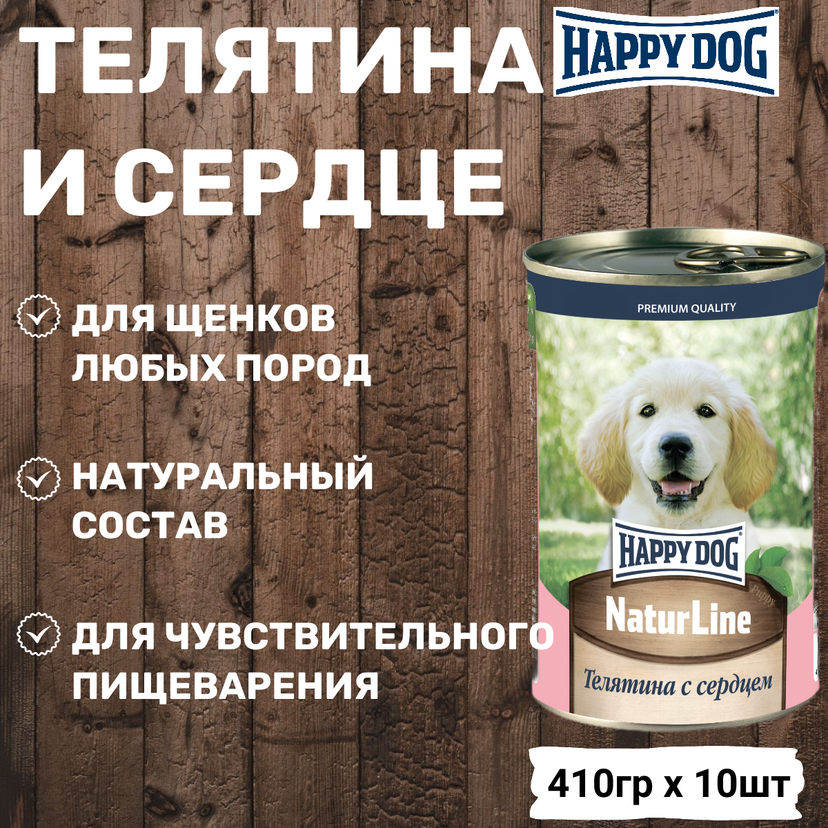 Купить корм для щенков Happy Dog NaturLine, телятина, сердце 1 уп. х 10 шт. х 410 г