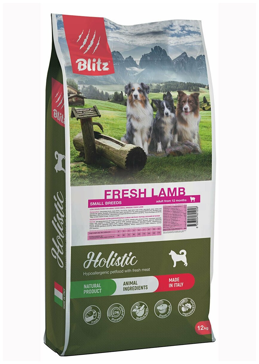 Корм Blitz Holistic Fresh Lamb Small Breeds (беззерновой) для собак малых пород, c ягненком, 12 кг