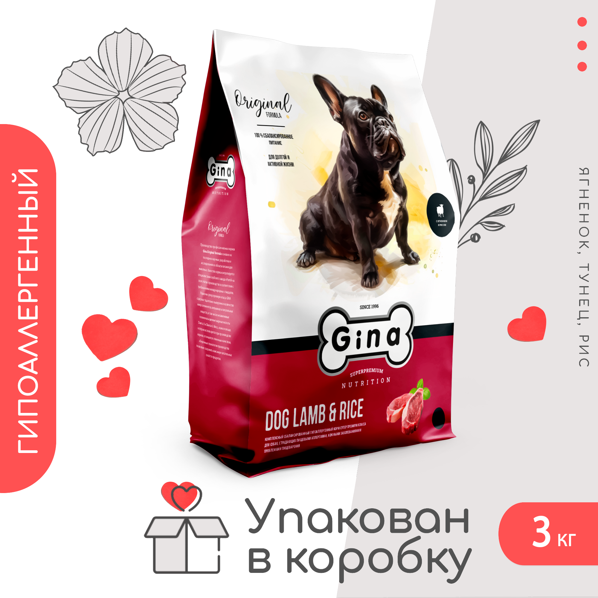 Корм сухой для собак гипоаллергенный Gina с ягненком и рисом, 3 кг
