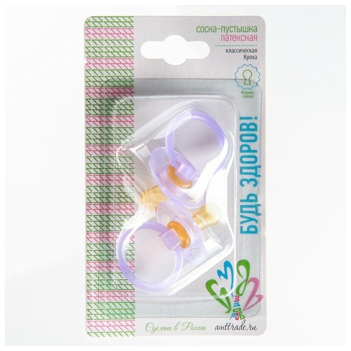 Пустышки Будь здоров! Набор классических пустышек для детей с малым весом, 2 шт., +0мес., латекс