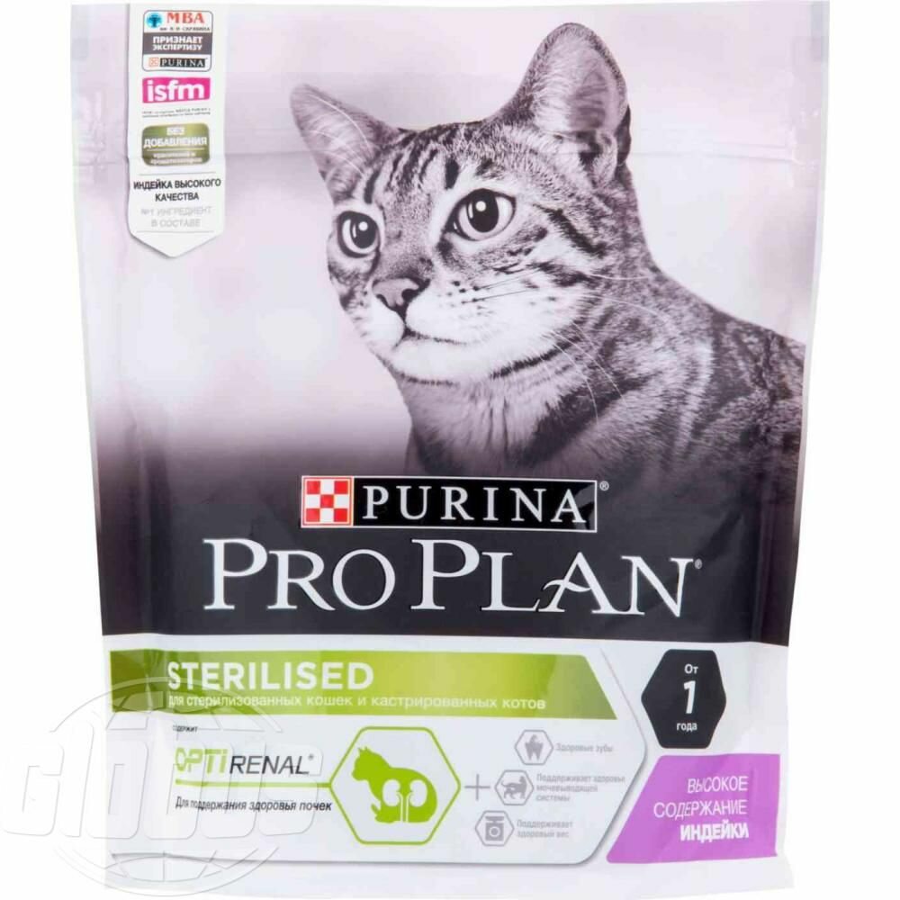 Сухой корм Pro Plan для стерилизованных кошек и кастрированных котов, с высоким содержанием индейки, 400 гр.