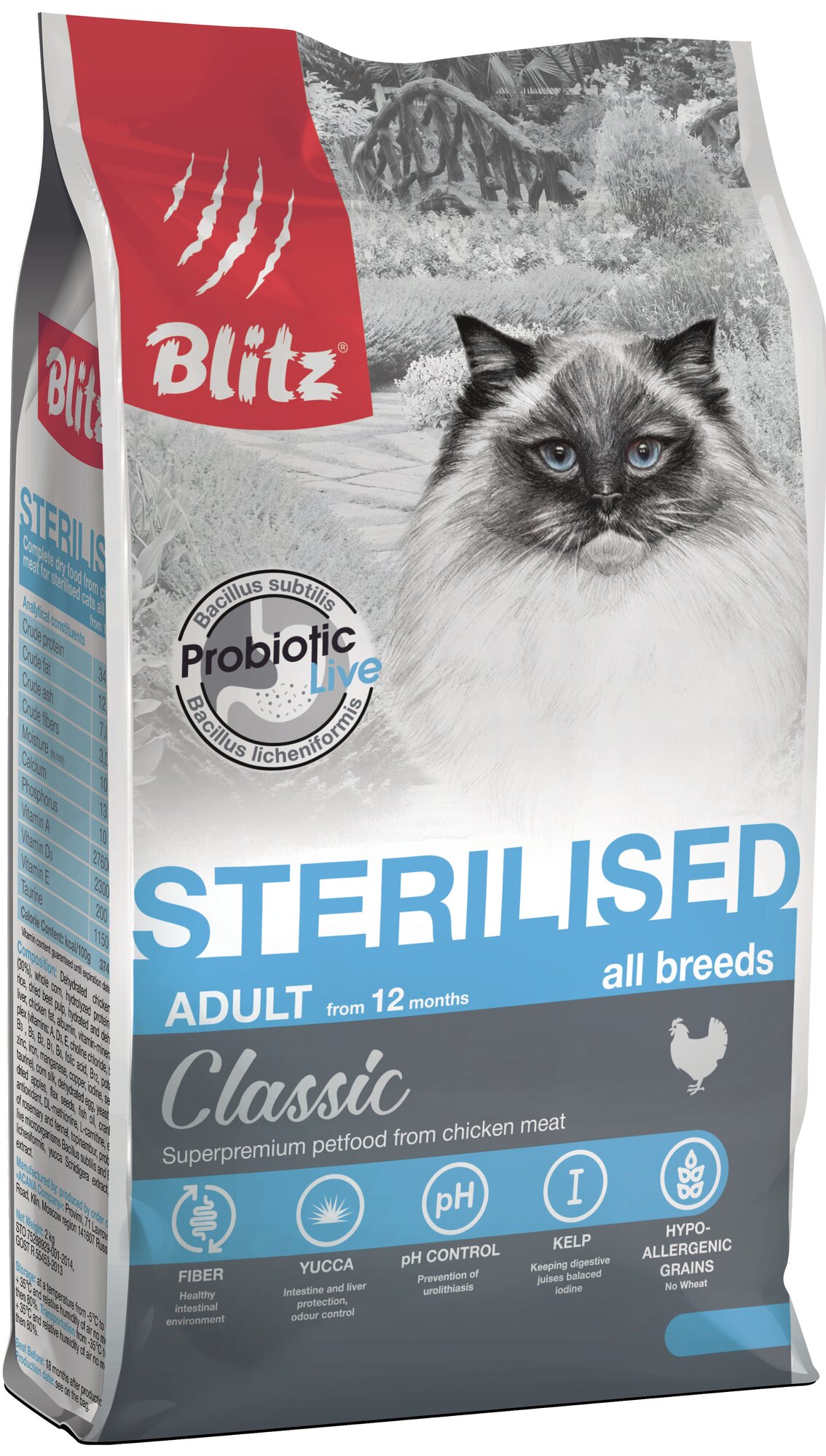 Корм сухой Blitz Classic Sterilised курица для взрослых стерилизованных кошек (2 кг)