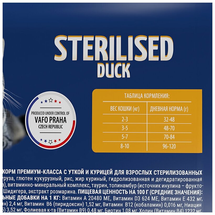 Сухой корм премиум класса с уткой и курицей для взрослых стерилизованных кошек