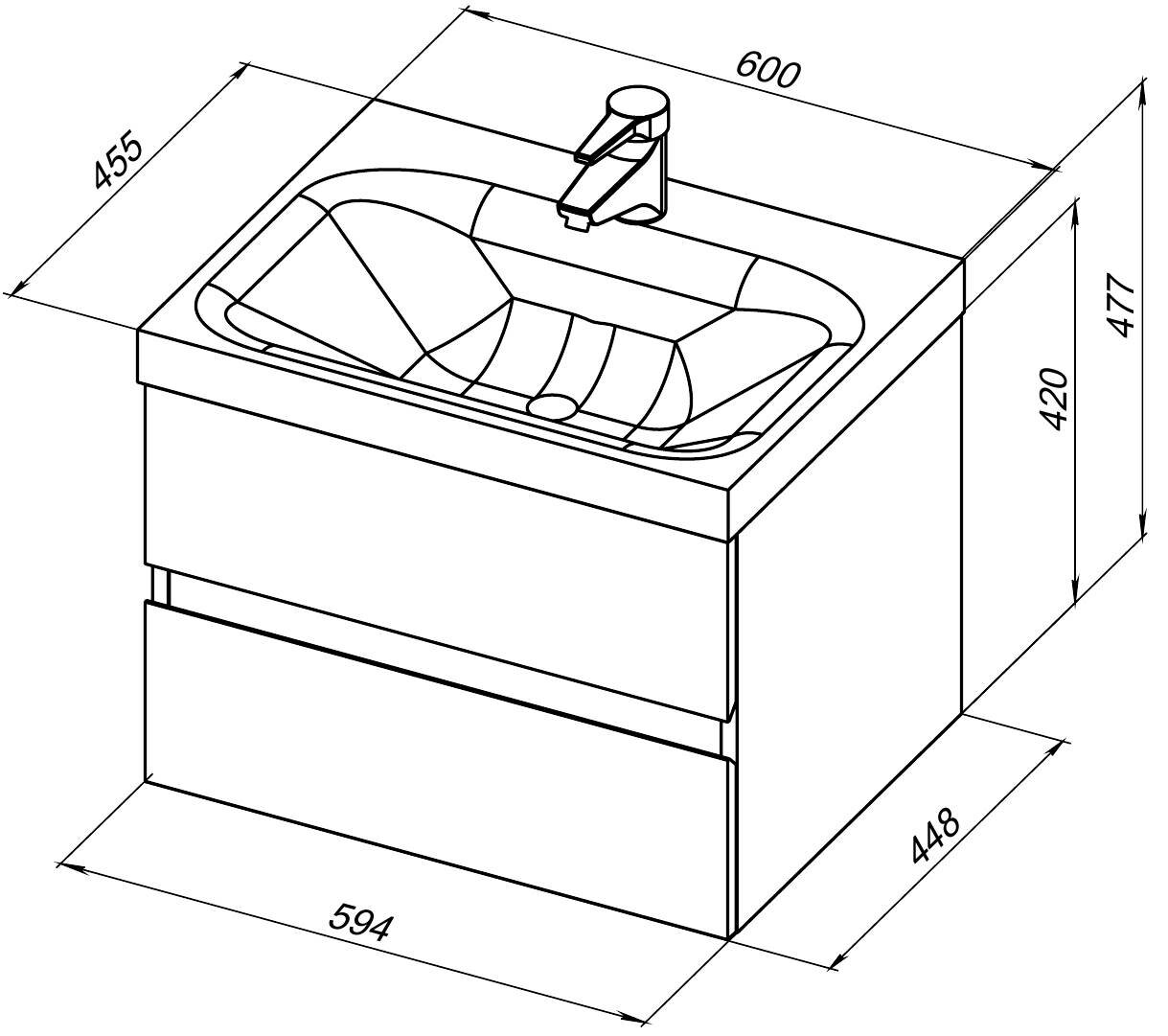 | Комплектация | тумба под раковину (раковина приобретается отдельно), 2 выдвижных ящика |