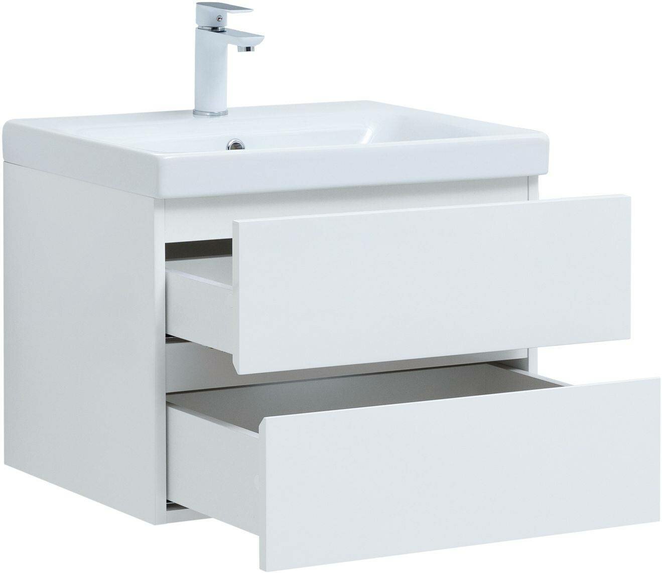 Тумба с раковиной Aquanet Беркли 60 белый глянец (2 ящика) 00302349