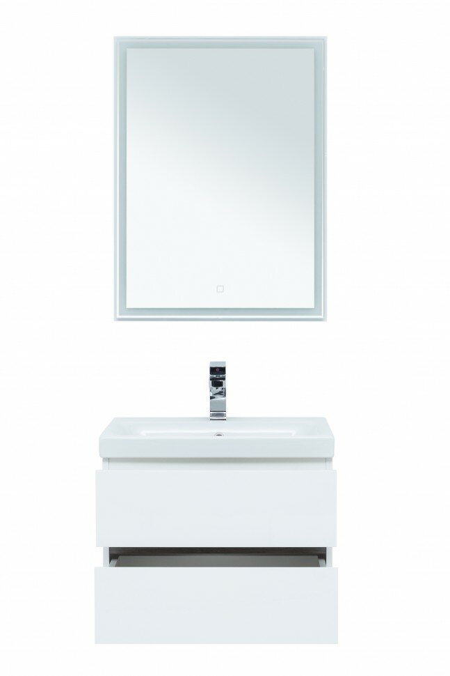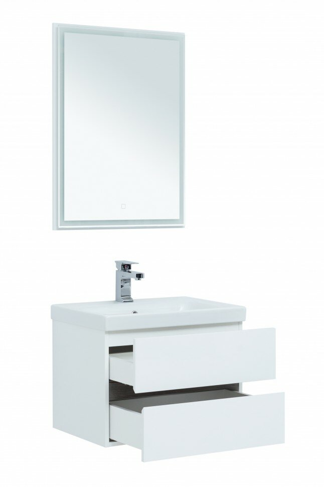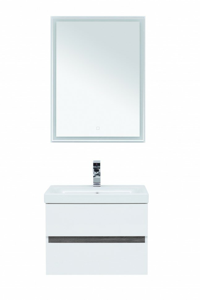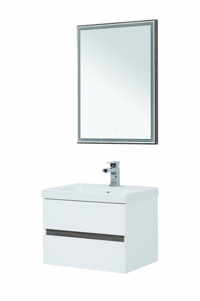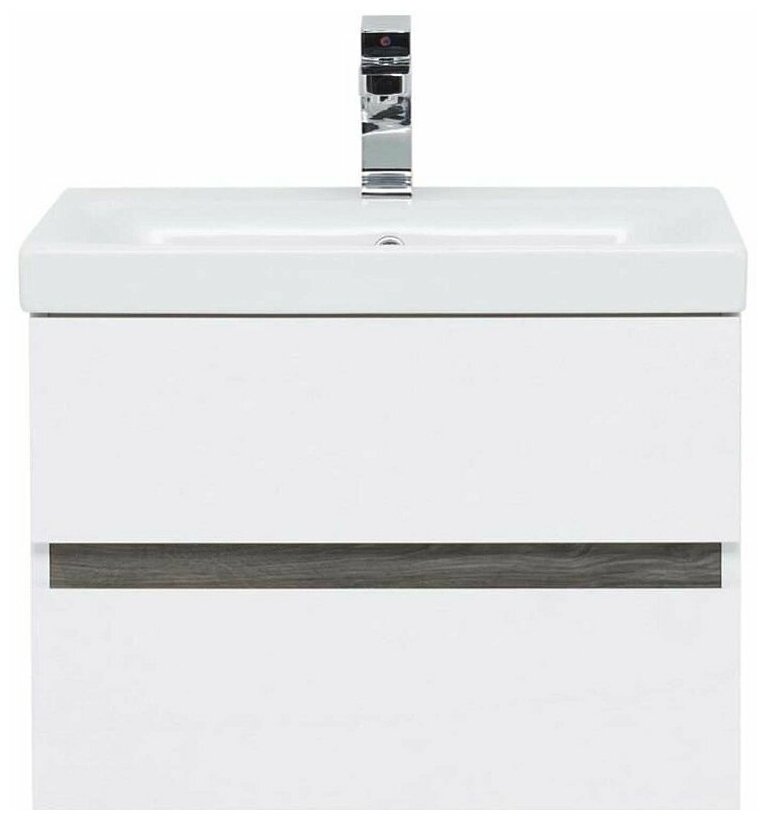 Тумба под раковину Aquanet Беркли 60 см 254289 белый глянцевый/дуб рошелье подвесная 2 ящика интересное: