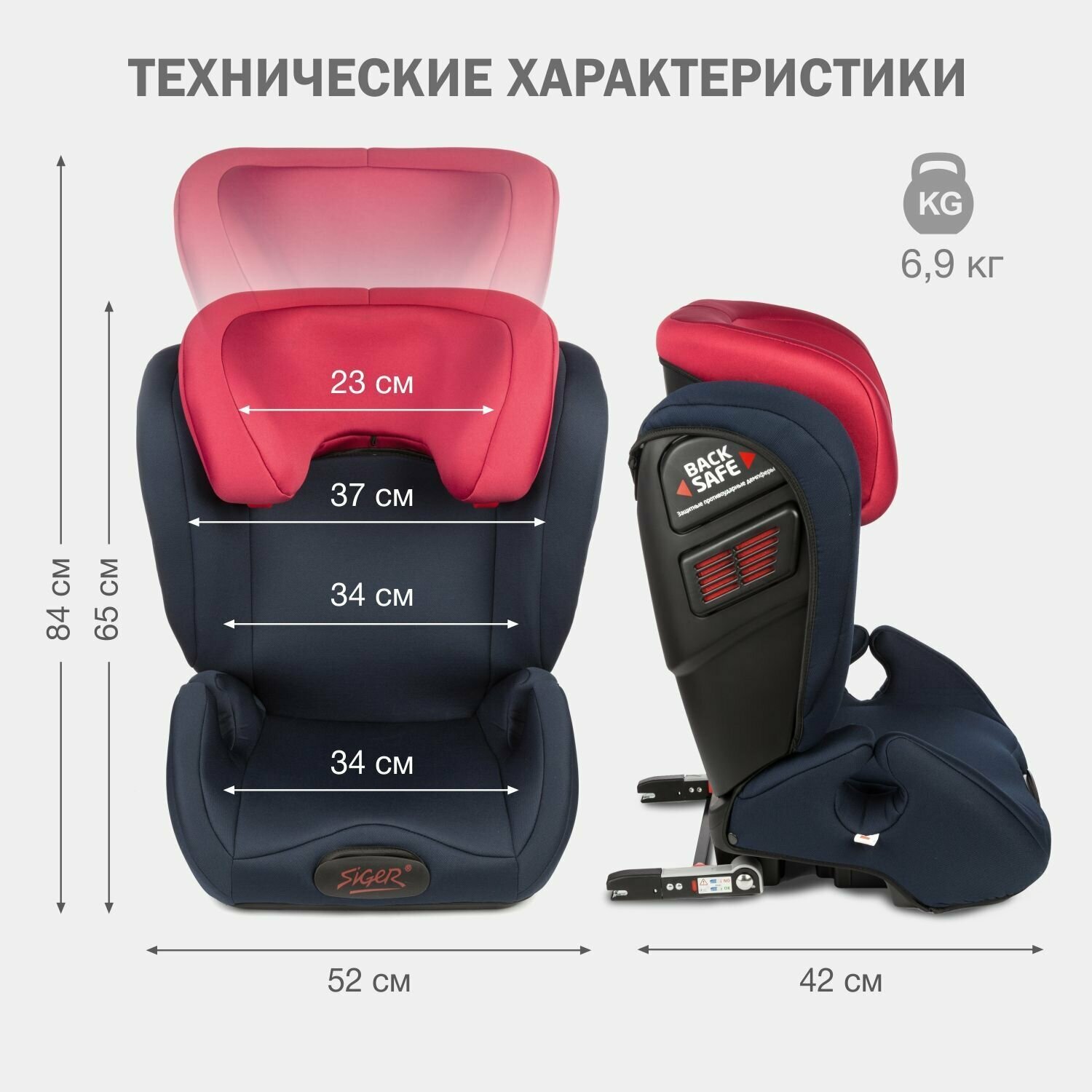 Автокресло детское 15-36кг (II-lll) 3-12лет royal blue (синийкрасный) Дельта FIX, SIGER KRES3327 (1 шт.)