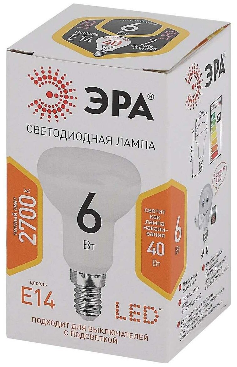 Эра Лампа светодиодная R50-6w-827-E14 480лм ЭРА Б0028489 интересное: