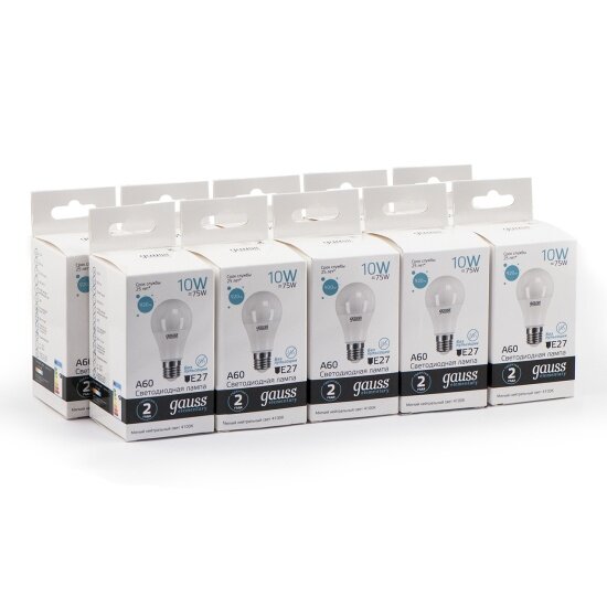 (10 шт)Лампа Gauss LED Elementary A60 10W E27 920lm 4100K 1/10/50